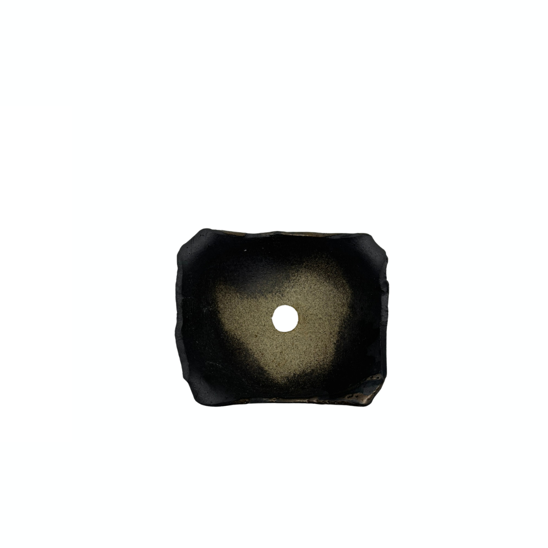 Bonsai pot - rechthoekig, geglazuurd, zwart met brons (12cm breed)