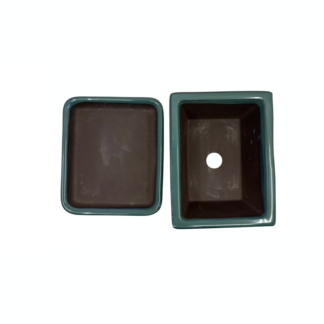 Ensemble de pots à bonsaï - rectangulaires, émaillés, verts (14 cm de large)