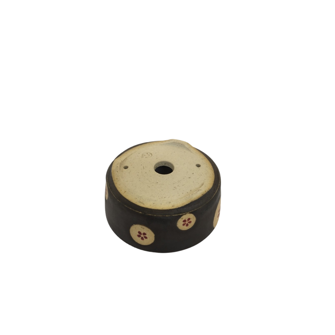 Pot Shohin bonsai brun avec fleurs rond 7 cm